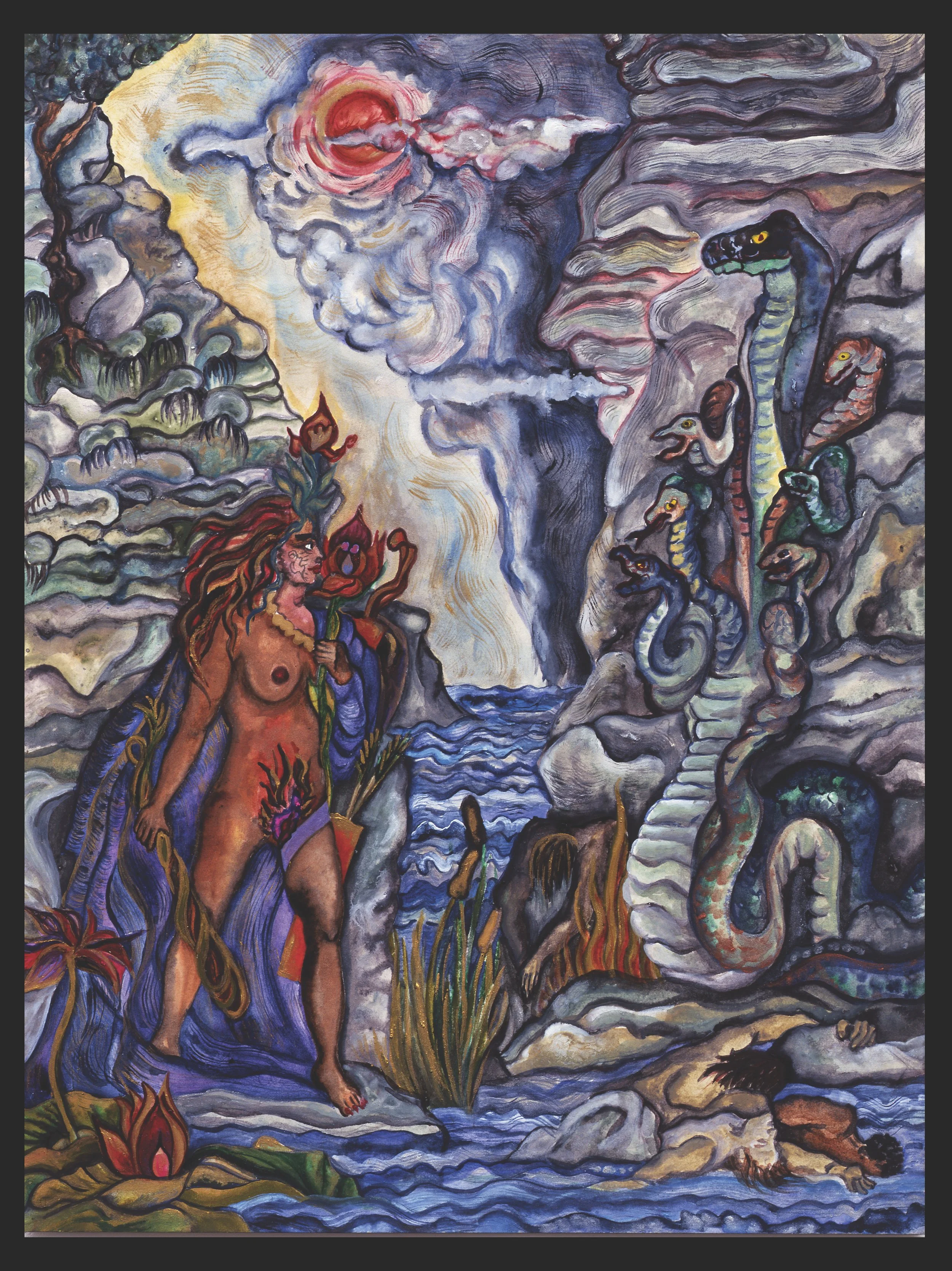 The Puki Monsters were birthed in the midst of the nineties culture wars, under the Hercules statue in Kassel, Germany, as a critique of phallic monumentality. Puki means vagina in Filipino. As small watercolors that fit in carry -on luggage, they have romped through art history, exposing it’s hidden, while subverting masterpieces. Ready to install guerilla style, they stop to admire non hegemonic references. Originally the watercolors were revenge romps as Reynolds created a feminist demonology. Later, mirroring her own Motherhood, they revealed the fallacy in the phallocracy, by playing with the imagery of the Madonna, while sparing no religious representations of the saintly mother. Finally, as Anonymous was a woman, so was the Allegory, a major pictorial practice of colonializing cultures. Allegorical Pukis appropriate the imagery to reimagine the forms as chimeras.